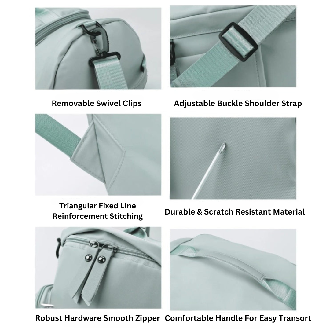 Smart organization makes packing effortless — featuring dual side pockets, a separate shoe compartment, and a wet pocket to store your swimming gear or toiletries. The adjustable and detachable shoulder strap and compression straps add comfort and stability on every trip.